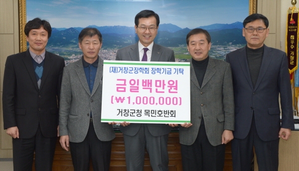 거창군청에 소속되어 있는 거창대성고 출신 재직 공무원들의 모임인 목민호반회(회장 김진락)는 지난 4일 거창군장학회(이사장 이홍기)에 장학금 100만원을 기탁했다.